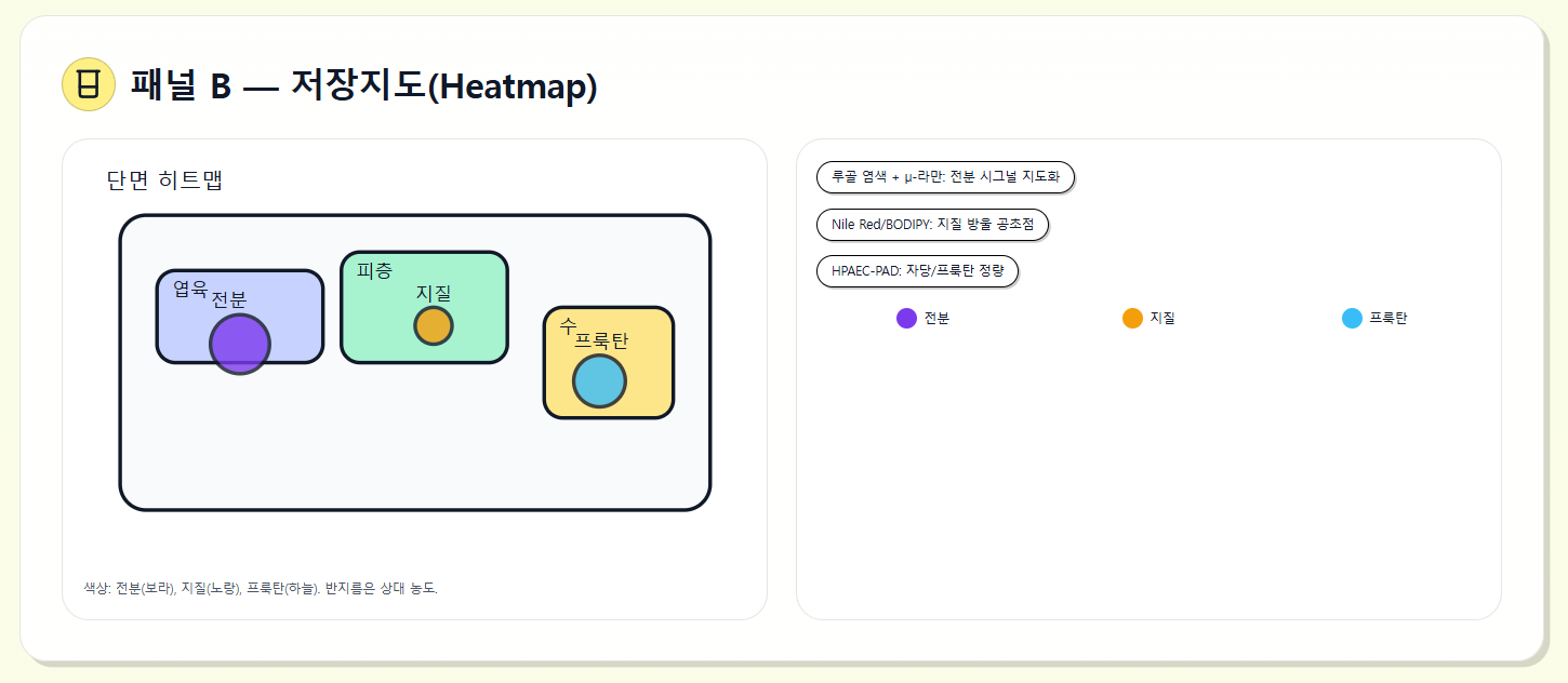 Fe(철): 헤미(peroxidase, P450)·Fe–S(페레독신) 중심 → 페닐프로파노이드 산화적 결합, 탄닌/리그닌·리그노플라보노이드 교차결합 유도 → 항산화·항균성 폴리페놀 축적과 연동.