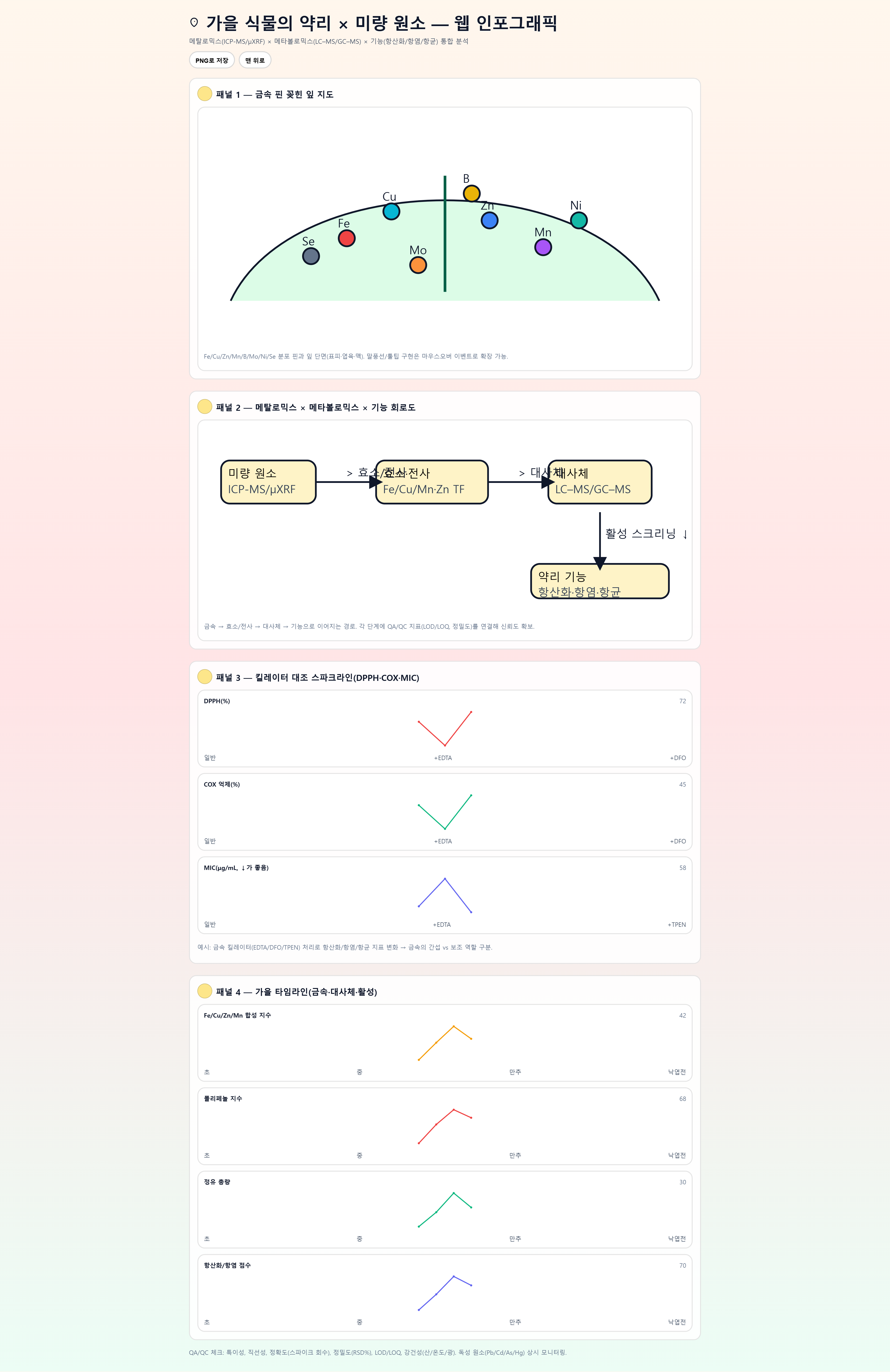 미량 원소 ↔ 가을 식물의 약리 경로(메커니즘 맵)